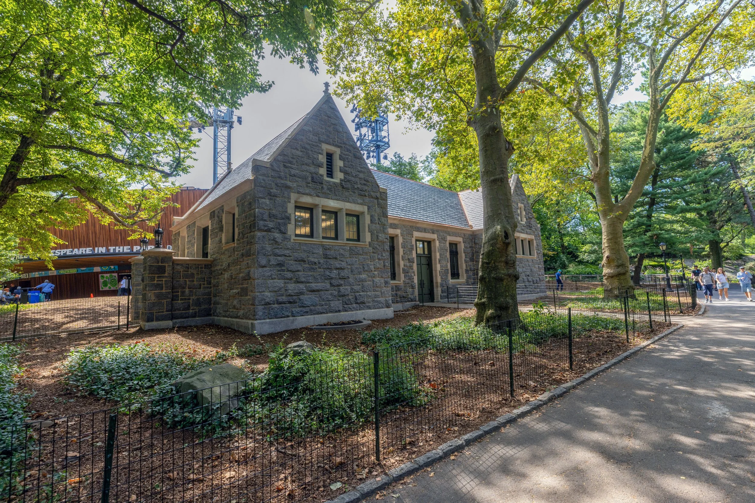 Located in Central Park, a National Historic Landmark and a New York City Scenic Landmark, the Delacorte Public Restroom was constructed in 1912. The granite, schist, and limestone building, designed in the Collegiate Gothic Style, was in need of a major restoration. The building serves the adjacent Delacorte Theater, which is undergoing a major revitalization by Ennead Architects for The Public Theater and the Central Park Conservancy.